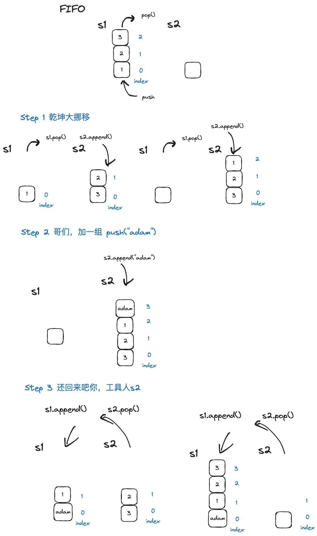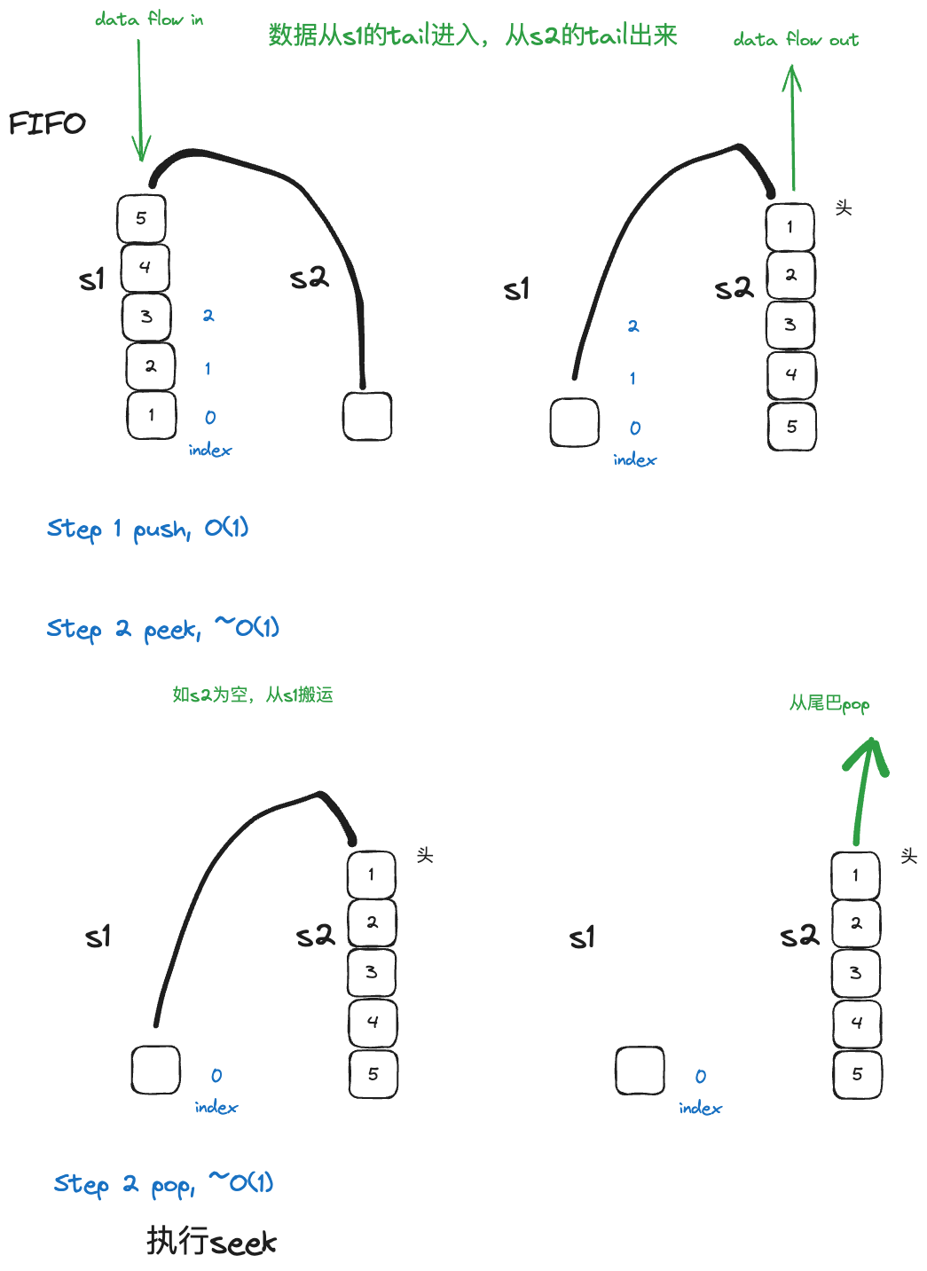 其它的functionality like pop or peek, 就是直接操作s1即可.