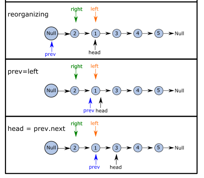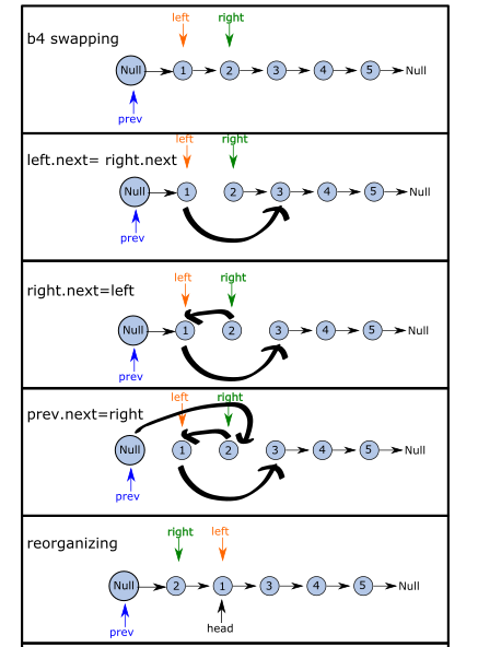# set up two pointers for swapping and rejoining