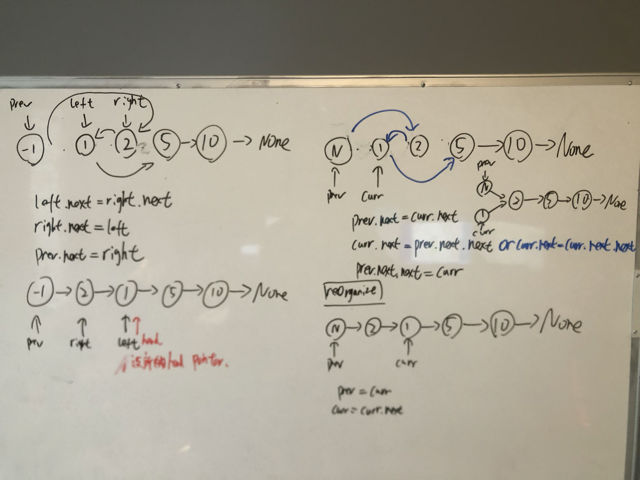 我一开始的写的代码没有考虑到rejoining previous node with newly swapped node.只考虑了用two pointer swap.