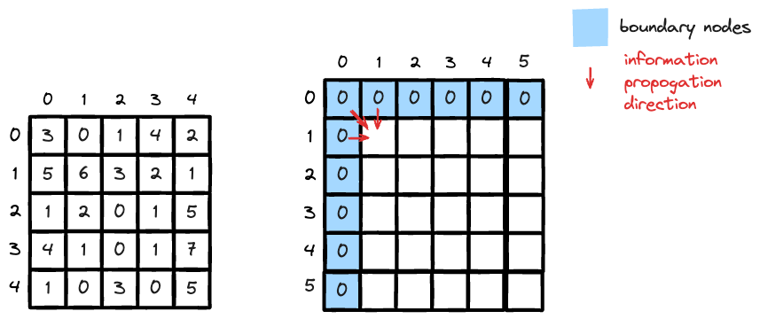 dp[i+1][j+1] = dp[i+1][j] + dp[i][j+1] + matrix[i][j] - dp[i][j]