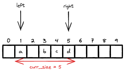 'a', 我们的windows size decreses from 5 to 3 (有一个空格) - 如果删掉