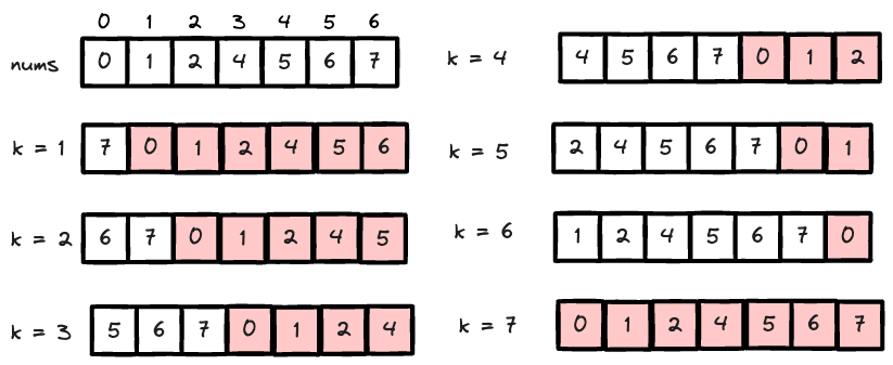 From the diagram above, we have notice that as k goes from 1 to n-1, more and more elements from the start of the array will be moved to the end of the array. After realizing the pattern, we realize we could use